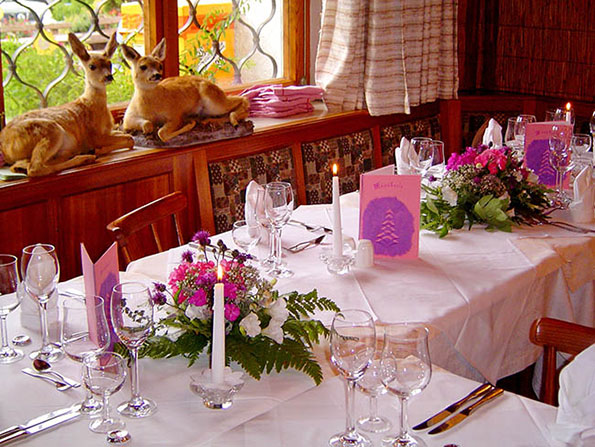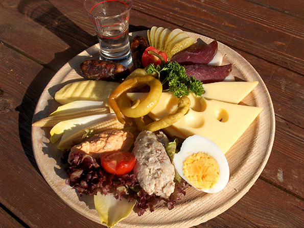 Am Nachmittag kredenzen wir Kaffee, Kuchen, Eis und eine Brotzeit – sowie warme Kleingerichte. Abends bieten wir für unsere Hausgäste drei Menüs mit vier Gängen (inklusive reichhaltigem Salatbuffet) zur Auswahl an.
